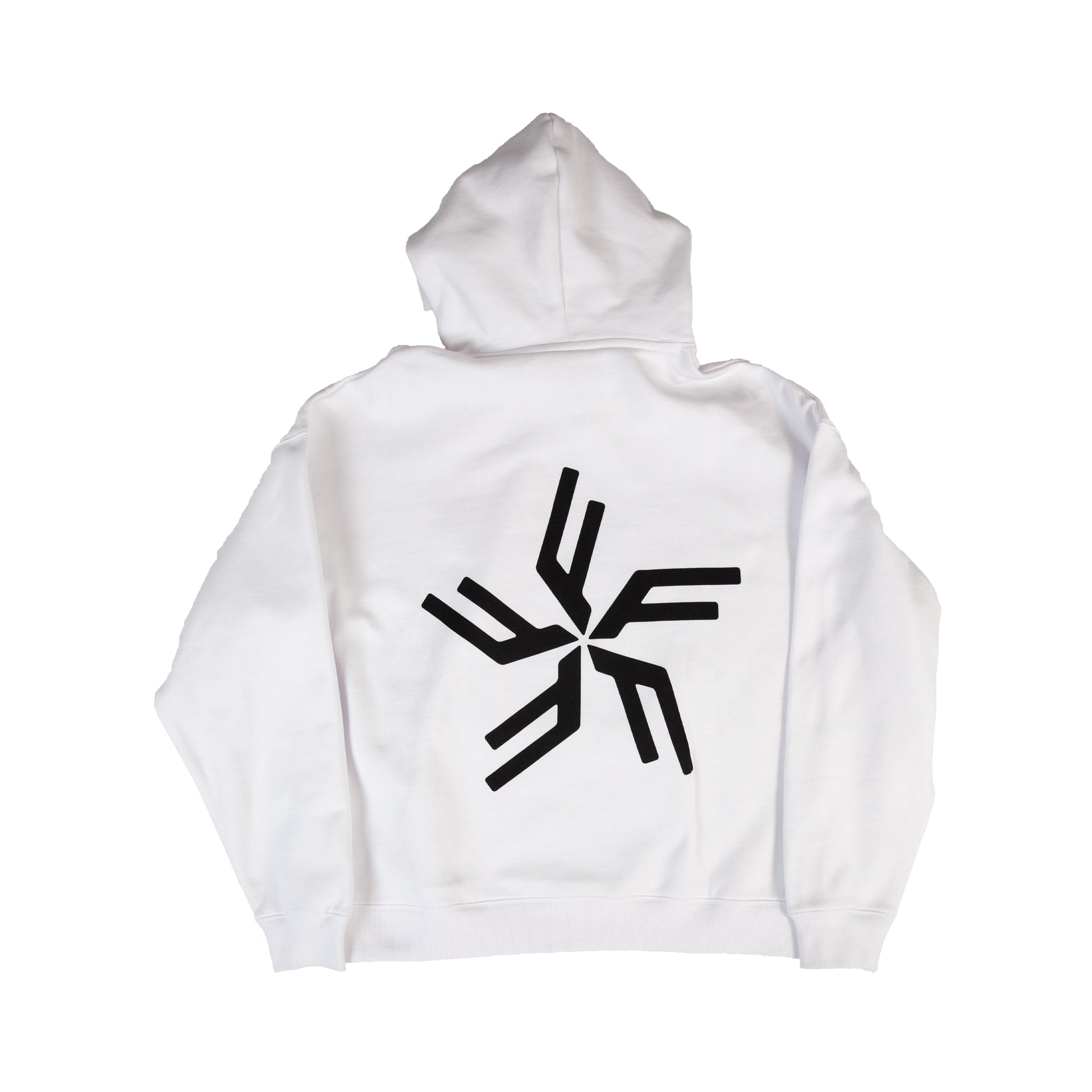 A premium heavyweight hoodie with FINE55E logo on front and FINE55E FLOWER logo on rear.